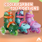 Entdecke die farbenfrohen Apollo Kids My 1st Skates – innovative Hybrid-Kinderrollschuhe, die das Beste aus Rollschuh und Inlineskate vereinen! Mit ihrer speziellen Rollen-Anordnung (vorne zwei hintereinander wie bei Inlinern, hinten zwei parallel wie bei klassischen Rollschuhen) bieten sie perfekte Stabilität und Balance – ideal für Anfänger und kleine Skating-Fans.