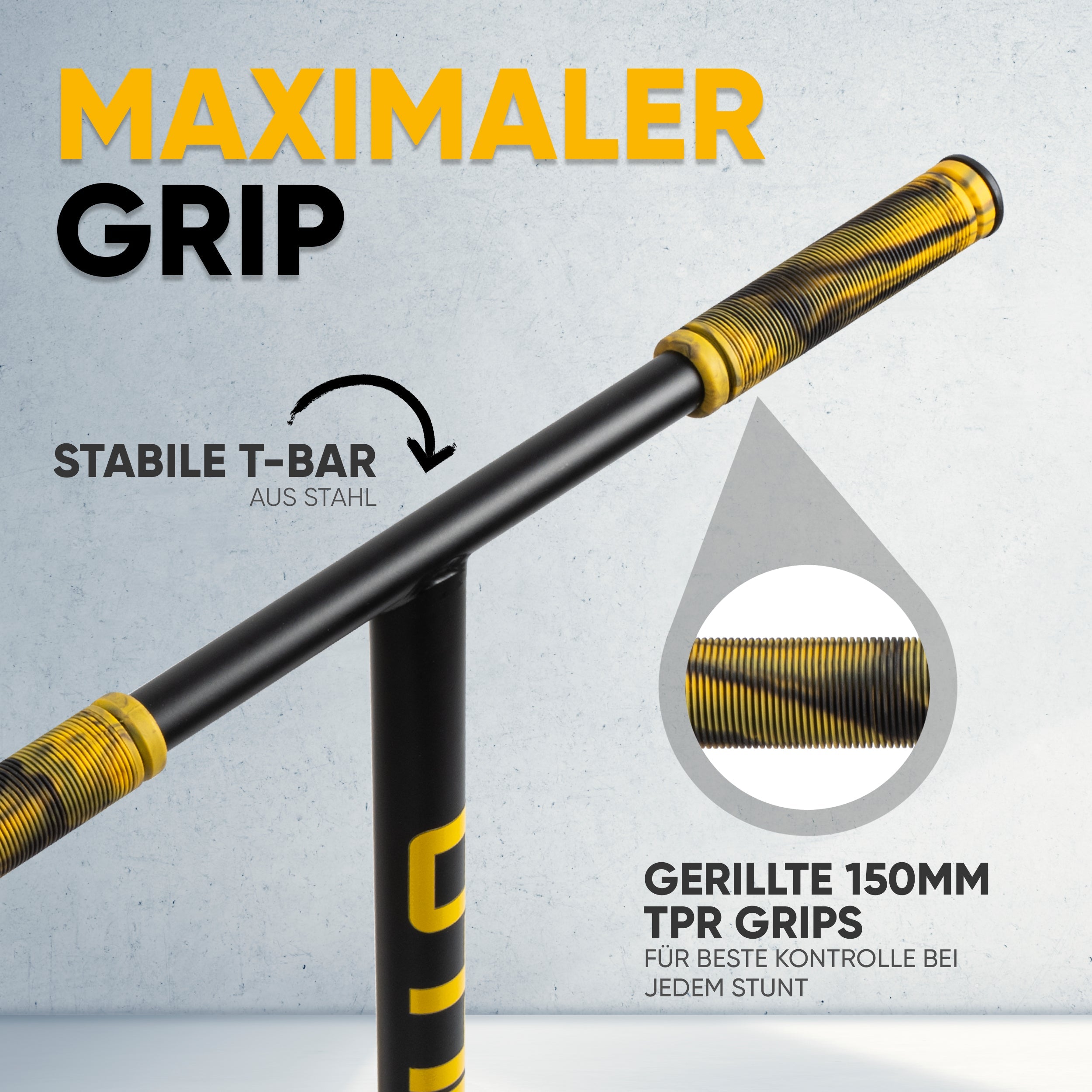 STYLISCH - Mit neuen coolen Designs ist der Scooter ein absoluter Blickfang! Die rutschfeste Trittfläche und die geriffelten TRR Grips des Stuntscooters garantieren die nötige Sicherheit.