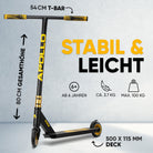 QUALITÄT - Stunt-Roller mit 360° T-Lenker, vierfach verschraubter Klemme und optimierter Stahlgabel - belastbar bis 100kg. Als Kinder Roller oder auch für Jugendliche und Erwachsene in jeder Hinsicht empfehlenswert.