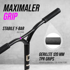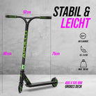 COOL, ABER MIT SICHERHEIT: Mit dem angesagten Design ist der Scooter ein absoluter Blickfang! Die rutschfeste Trittfläche und die geriffelten TPR Grips des Stuntscooters sorgen für die nötige Sicherheit.