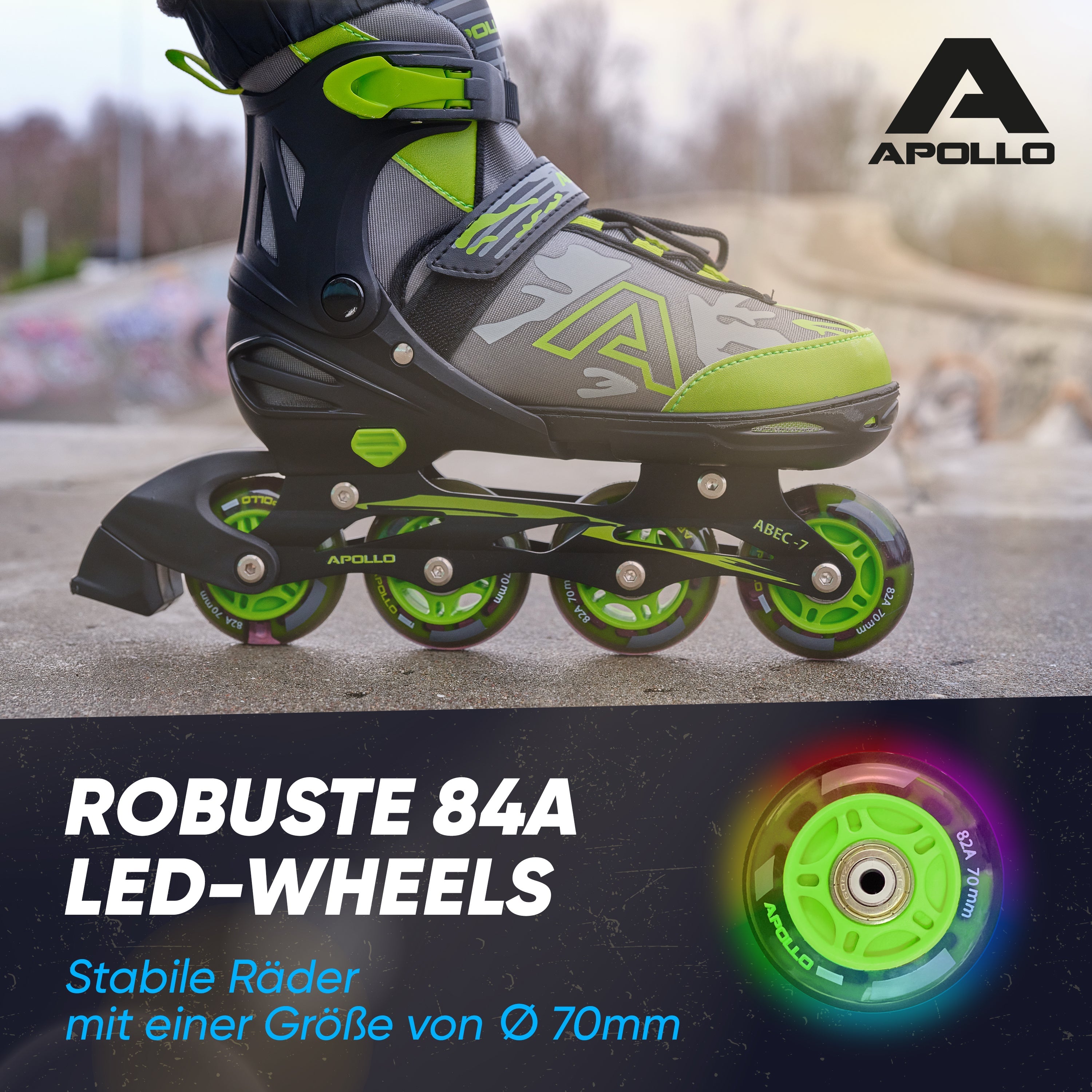 INLINER FÜR JUNG UND ALT: Apollo Inline Skates in den Größen 31-42 sind leicht und robust, haben weiche Softboots mit optimierter Passform. Diese Roller Schuhe bieten ein perfektes Gleichgewicht zwischen Komfort und Style für Kinder und Erwachsene.