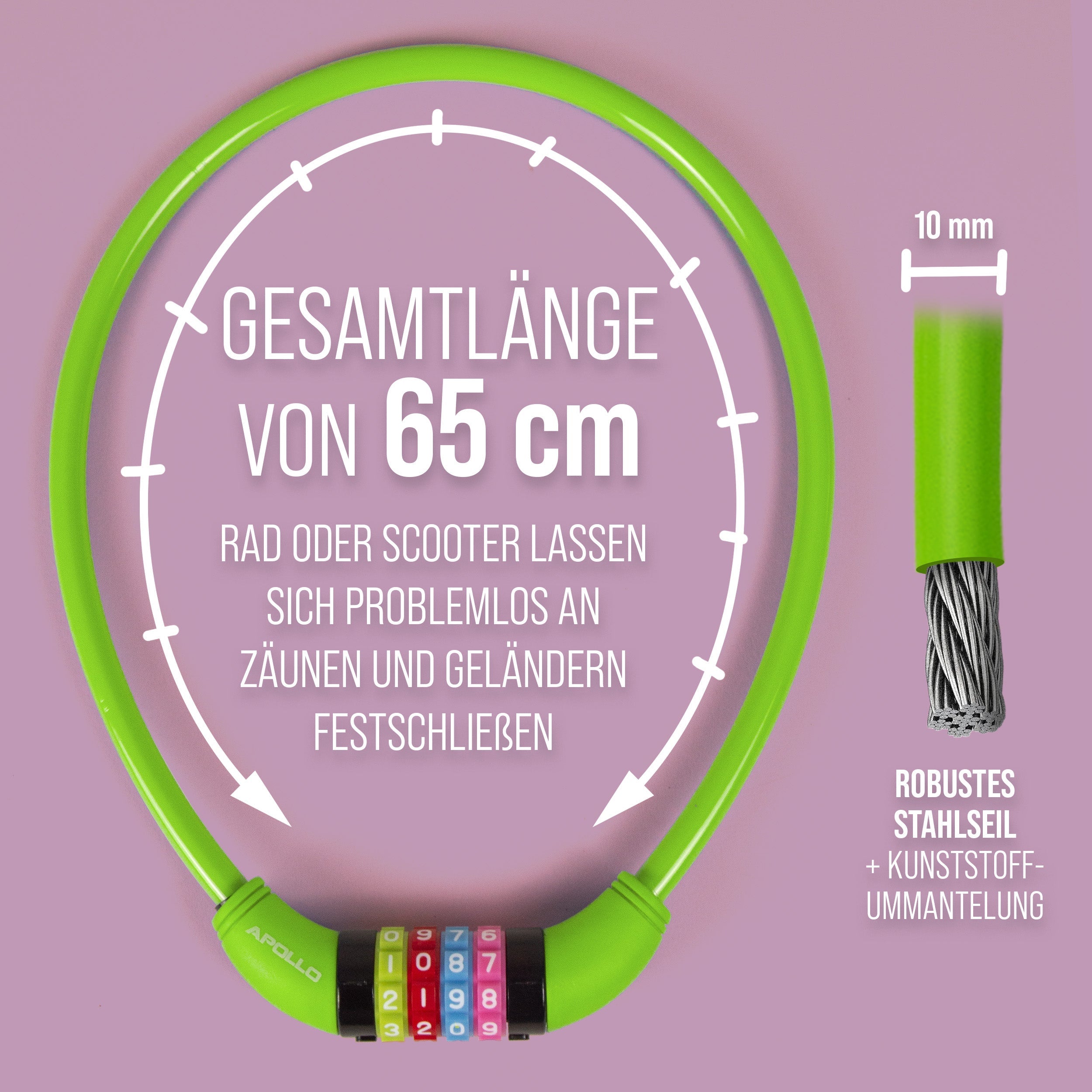 Fahrradschloss mit Zahlen für Kinder, 10x650 mm, Scooter Schloss,Zahlenschloss
