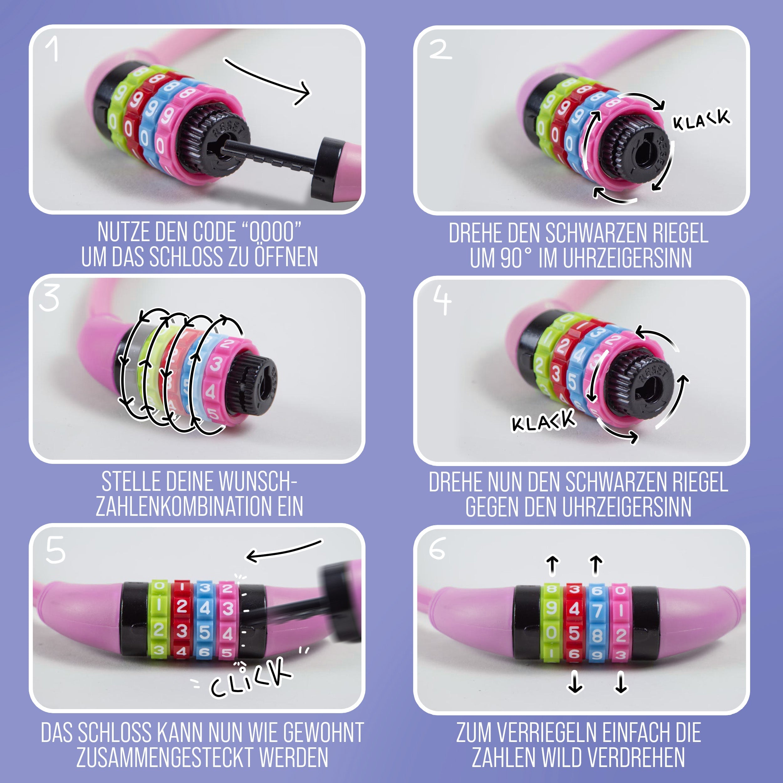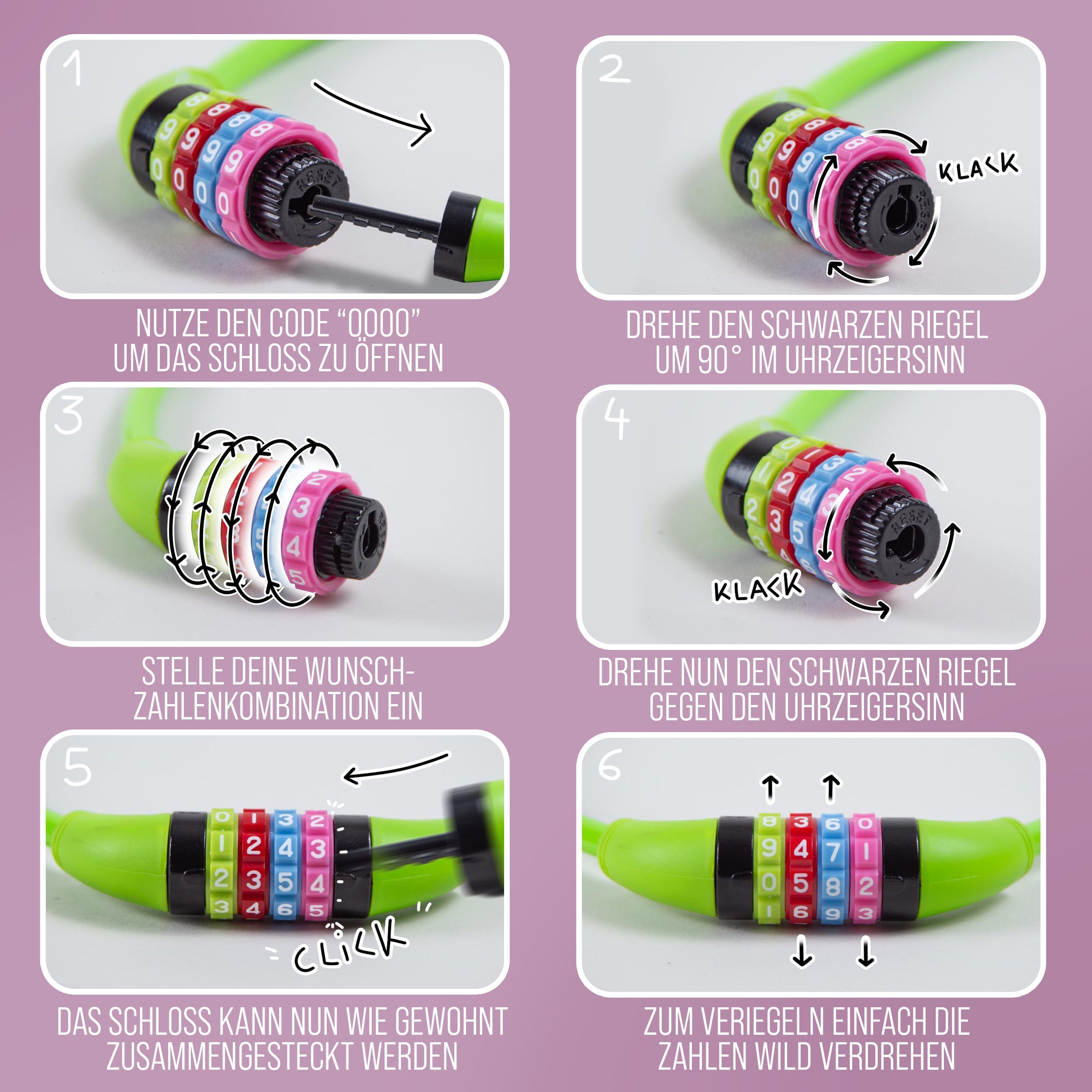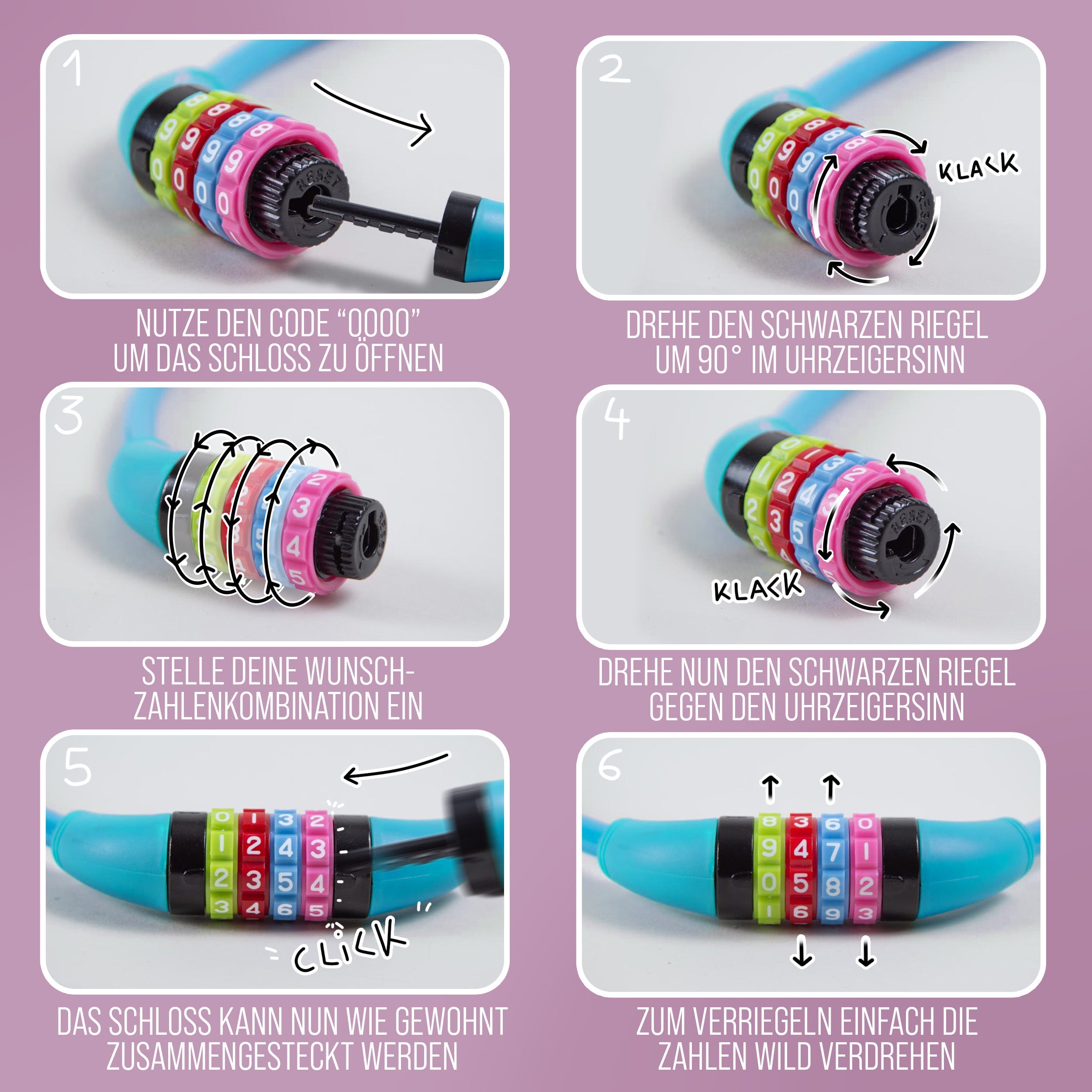 - IDEAL FÜR KINDER - Mit diesem Kinderfahrrad Schloss kann Ihr Nachwuchs sicher Eigenverantwortung übernehmen. Die leichtgängigen Rädchen sind auch für Kinderhände kein Problem.