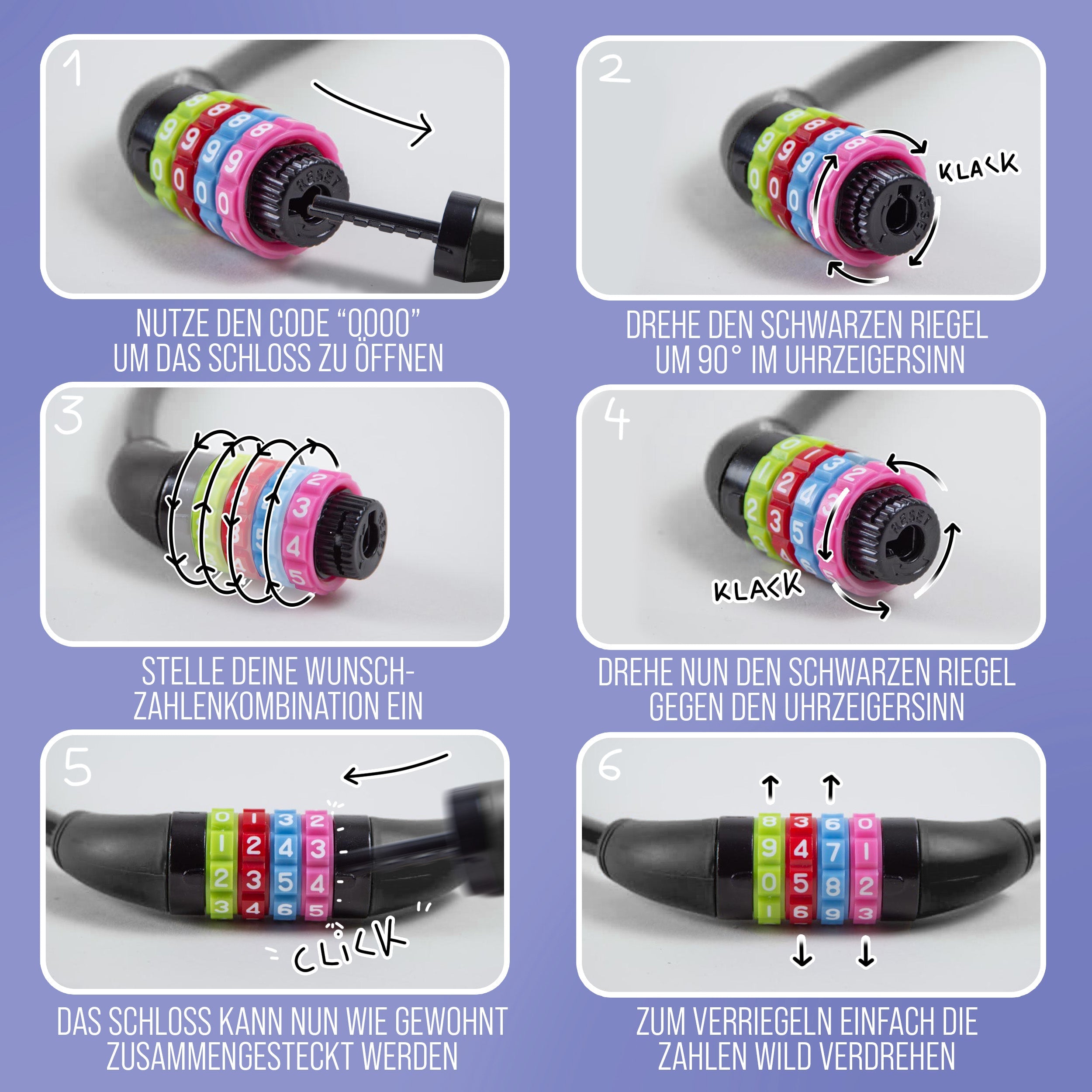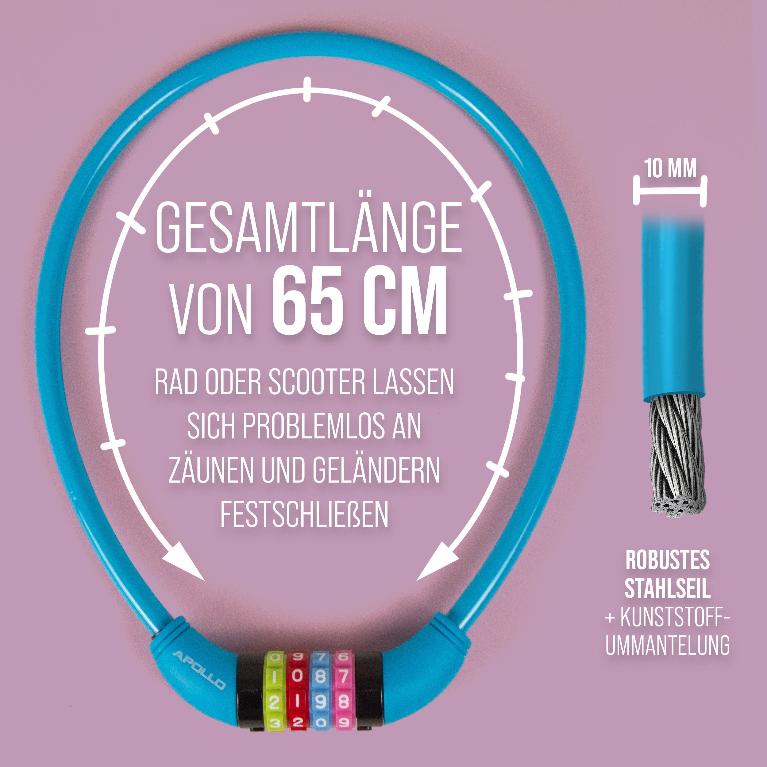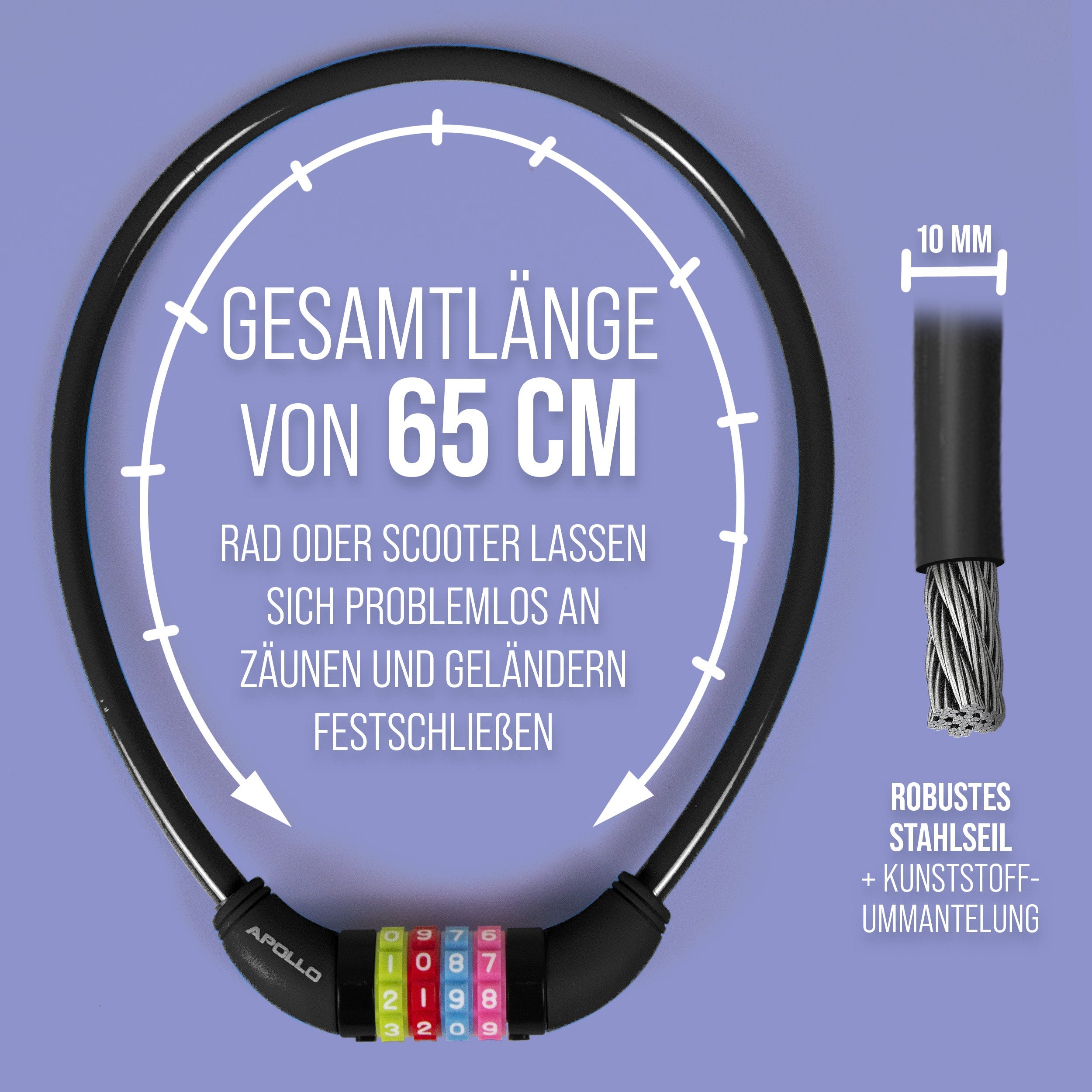 - EIGENSCHAFTEN - Individuelle Zahlenkombination möglich (4-stellig). Eingestanztes Zahlen Symbol. Gehärteter Stahl für hohe Sicherheit. Kunststoffummantelung (gummierter Überzug) beugt Lackschäden vor. Wetterbeständige Bauart.